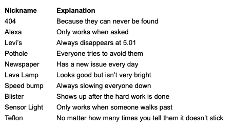 For the full list see Kfm’s discussion on Instagram: 2025’s Best Office Nicknames